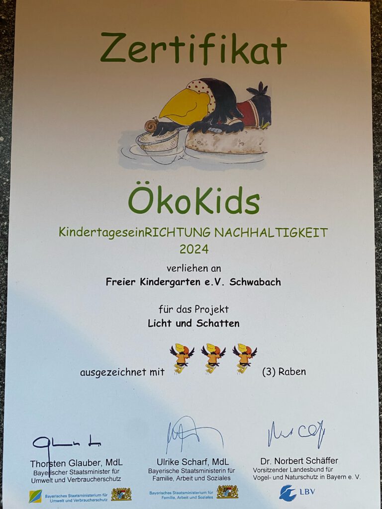 Erneut erhielten wir eine Auszeichnung der ÖkoKids! Für das Projekt „Gesunde und nachhaltige Ernährung – gut für uns und unsere Erde“ konnten 3 Raben erzielt werden.
